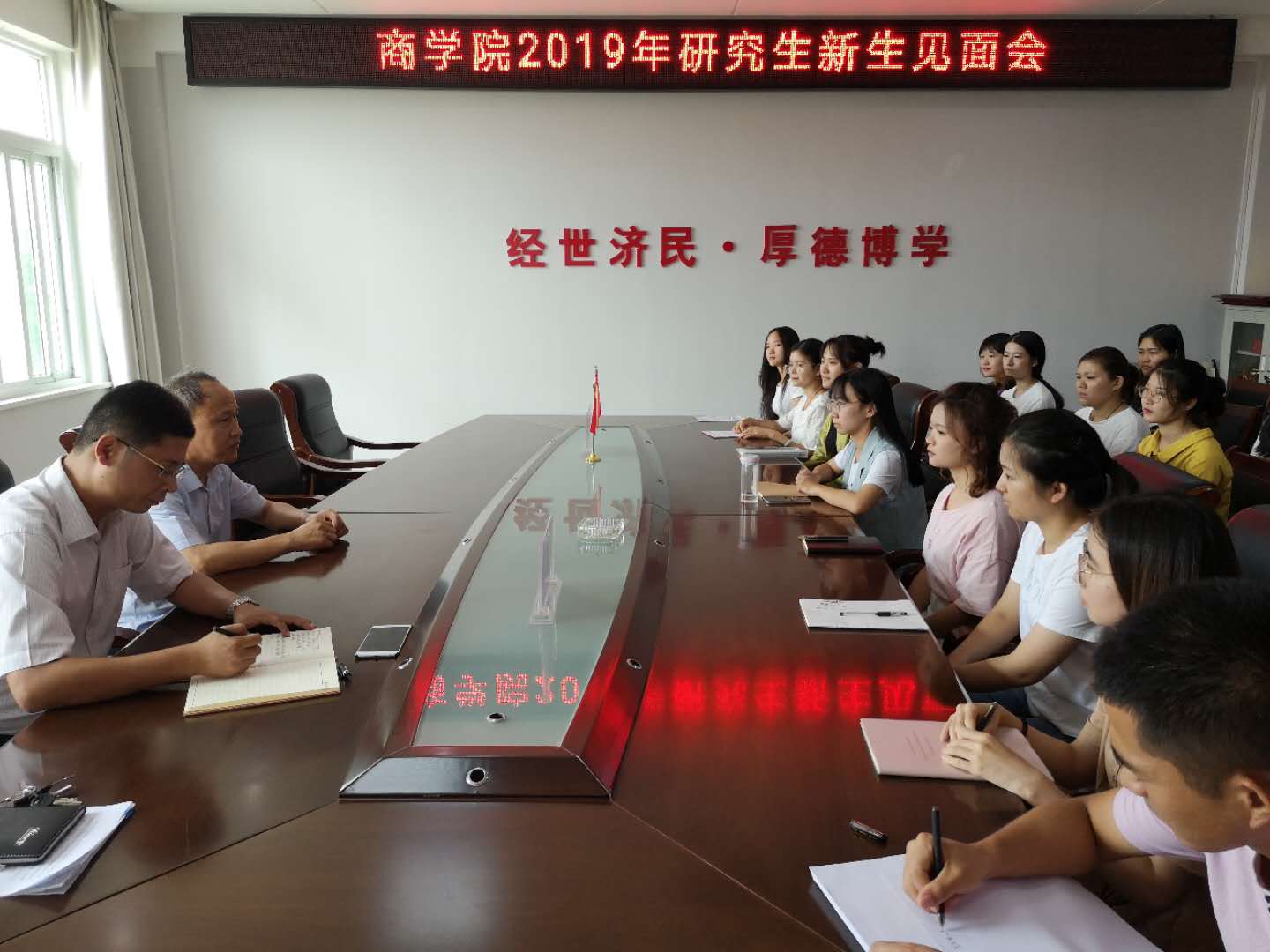 9月12日上午,太阳集团122cc在经管楼506举行2019级研究生新生见面会。商公司党委书记盛正国教授、主管研究生工作的杜辉副经理、研究生秘书何凤老师以及全体新生参加会议。