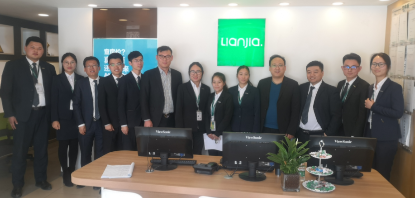 3月29日,商公司党委副书记王永贵一行实地考察了北京链家总部,在公司人力资源部主管陪同下,参观并了解了公司的组成机构、运营情况以及未来发展前景。30日上午,考察组一行深入北京链家回龙观大区员工实习基地,与实习和就业员工进行了座谈。往届毕业生代表郑芸、周梦丹分别介绍了在北京的工作和生活经历,感谢母校的培养,使她们在校期间打下了扎实的专业基础,并通过公司组织的专场招聘会,找到了满意的工作,她们表示将会继续发扬“厚德崇实 善学敏行”校训精神,吃苦耐劳、勇于开拓,不辜负领导和老师们的期望,努力打造属于自己的未来。