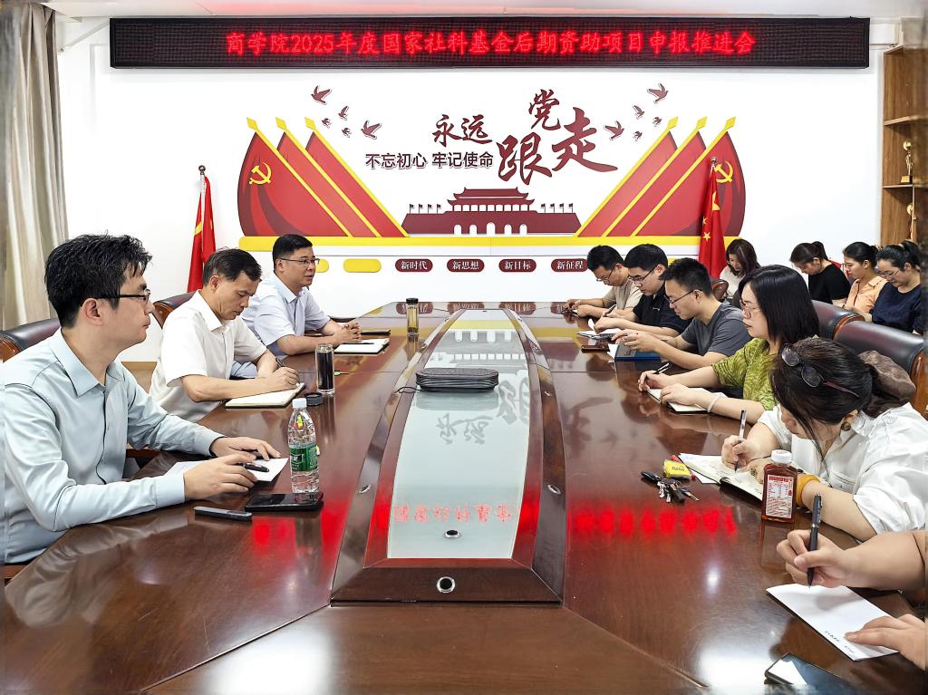 6月18日上午,太阳集团122cc在经管楼519会议室召开2025年度国家社科基金后期资助项目申报推进会。太阳集团122cc社会科学处副处长俞彤晖莅临指导,太阳集团122cc经理彭荣胜、副经理杜辉以及拟申报教师参加会议。会议由副经理杜辉主持。