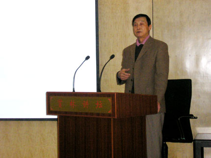 报告会上,郭红军研究员重点阐述了当前国内外经济发展的总体格局、河南经济社会发展的优势与地位、中原崛起与战略对策等三方面问题。他从对全球经济发展的总体趋势、GDP和进出口贸易在世界所占比例等方面分析入手,将当前全球经济发展的总体格局形象地概括为 “三足(美欧日)鼎力,四星(中国、印度、俄罗斯、巴西)崛起,危机蔓延,经济衰退”。在谈及全球经济危机时,郭红军研究员指出,此次由美国次贷危机引发的全球经济危机是史无前例的,至今仍在蔓延,相比于世界其他国家采取的措施,中国作为迅速崛起的新兴经济强国所做的努力无疑是最大的。 关于我省的经济发展情况,郭红军研究员在客观分析我省的基本情况后指出,我省正处于工业化的加速发展阶段,在农业、工业、文化等方面均具有较好的发展优势,但也存在着农业基础薄弱、工业结构不优、经济发展方式比较粗放、创新能力不足、人口素质不高等制约我省经济快速发展的主要问题。关于中原崛起的话题,郭红军认为,在国家“中部崛起”规划的科学指导下,我省及时提出了调整经济结构、加强农业基础、扩大市场内需、重视改善民生等一系列战略方针,为推动我省向经济强省和文化强省的两大跨越,实现中原崛起起到了积极的促进作用。