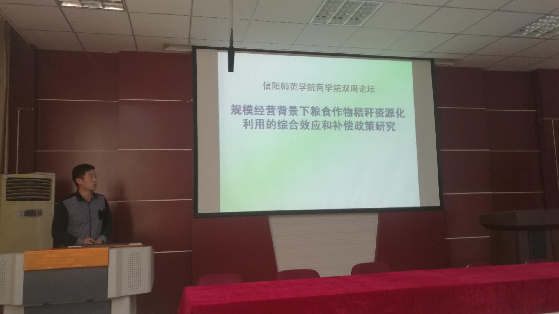 蒋磊博士从选题背景、文献综述、研究内容等方面就如何促进粮食作物秸秆资源化利用提出了鲜明观点,认为应从经济效应和生态效应两个维度评估粮食作物秸秆资源化利用的综合效应,并结合规模经营背景分析相关主体的利益诉求及补偿标准,以便构建全面的粮食作物秸秆资源化利用激励机制与政策体系。本场报告以作者本年度获批国家自然科学基金项目为选题,启发性强,进一步提高了与会教师在科研方面的信心,报告在热烈掌声中结束。