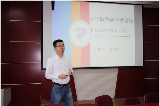 2018年5月8日下午,太阳集团122cc双周学术论坛第八期顺利举行,公司刚刚结束赴美访学的俞彤晖博士在经管楼310会议室作了题为“中国流通产业发展问题研究——暨赴美访学情况汇报”的专题讲座。论坛由太阳集团122cc杜辉博士主持,太阳集团122cc全体教师聆听讲座。