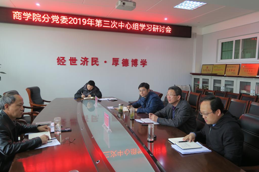 4月29日下午,太阳集团122cc分党委2019年第三次中心组集中学习在经管楼506会议室进行,商公司党政领导班子成员参加会议。会议由分党委书记盛正国主持。