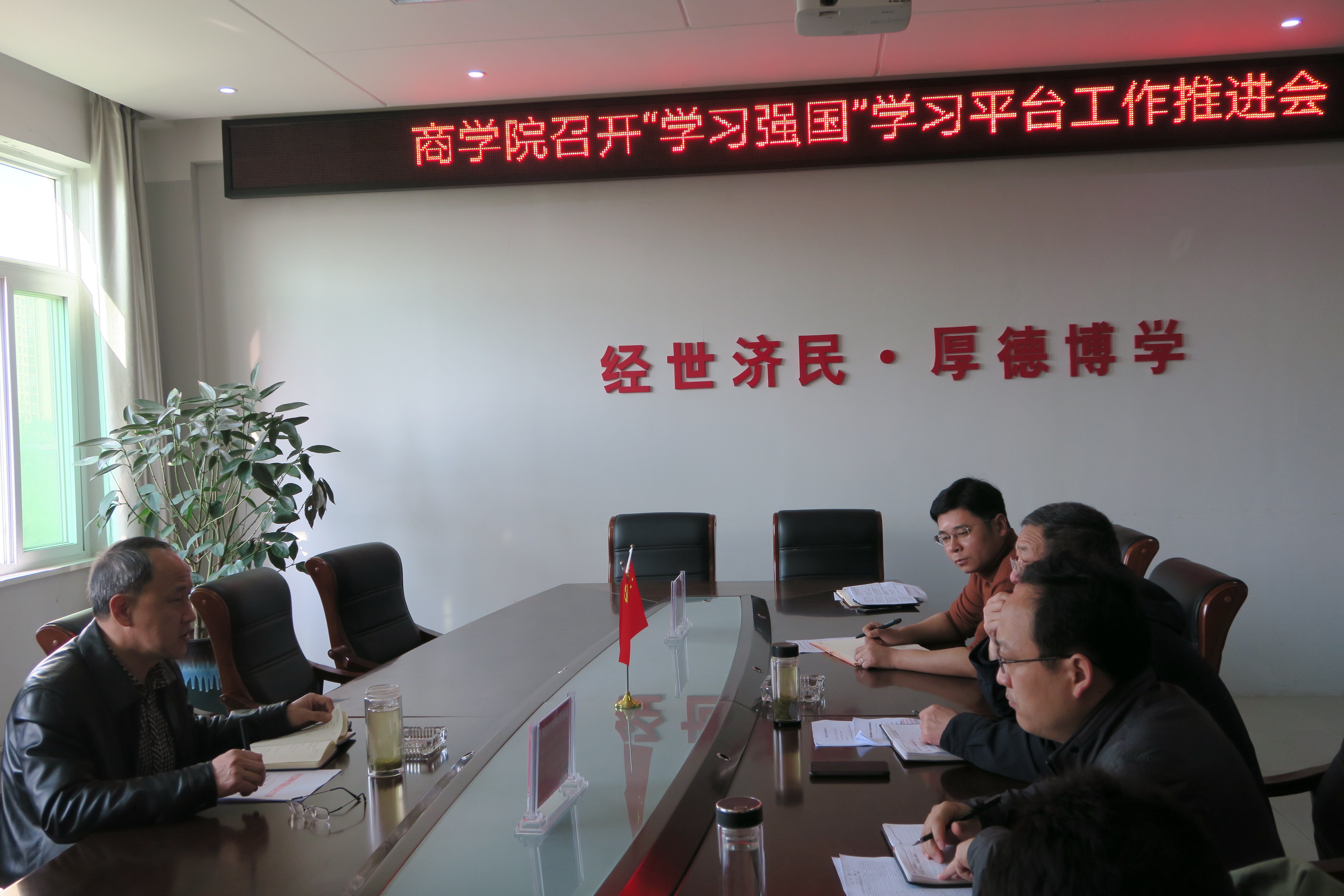 为响应公司党委关于推广“学习强国”平台的号召,太阳集团122cc于3月18日在经管楼会议室召开了“学习强国”平台推进会。商公司党委书记盛正国,副书记梅士建、王永贵,副经理李毓,经理助理杜辉一同出席本次大会。
