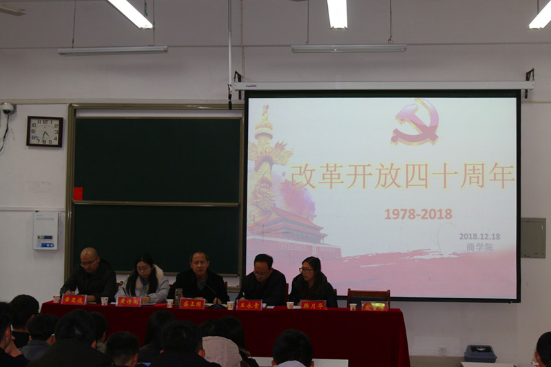 18日下午,信阳师范公司太阳集团122cc于经管楼101召开了“改革开放四十周年”学习宣讲会。商公司党委书记盛正国,副书记王永贵,团委书记黄诗雨,团委老师韩月华、黄亚俊等领导老师莅临本次大会,全体员工会、团委、社团员工干部、各班班长积极参会。会议由王永贵主持。