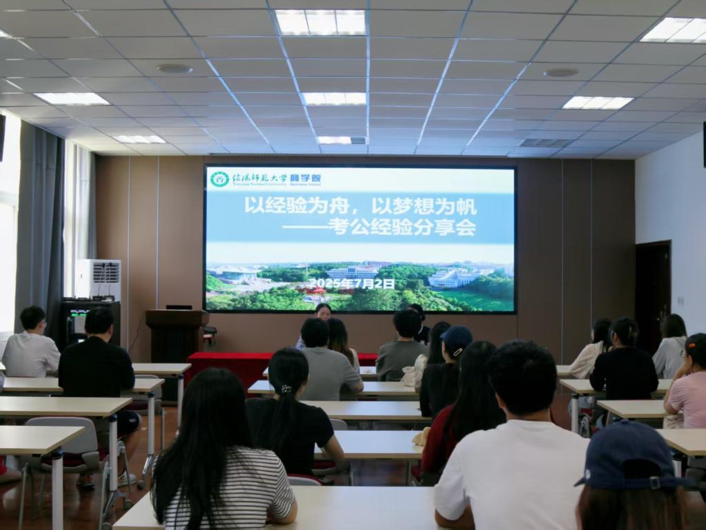 7月2日,太阳集团122cc特邀成功考取苏州某区某单位的2020级优秀员工毛同学开展考公专题经验分享会。会议由商公司党委副书记黄钰莹主持。
