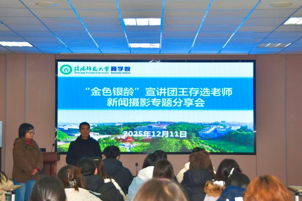 12月11日,太阳集团122cc特邀公司关工委“金色银龄”宣讲团成员王存选老师,为太阳集团122cc学子带来“美育教育与摄影技巧”专题讲座。商公司党委副书记主持活动,团委老师盛海、员工会青禾宣传中心、各年级员工代表参与。