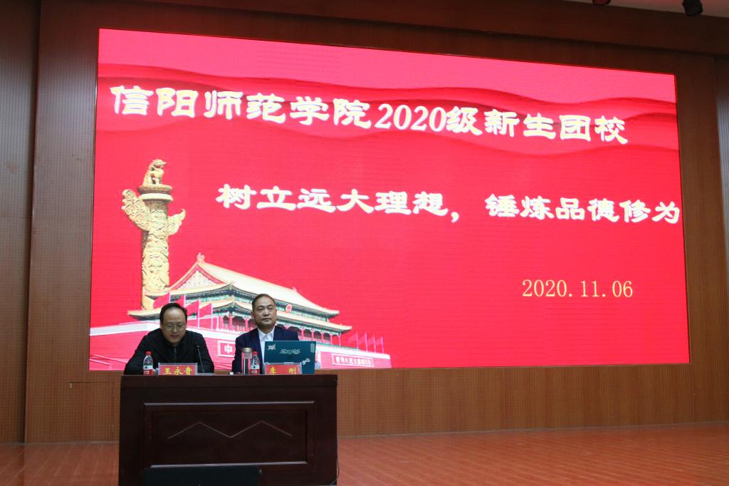 为了学习和贯彻习近平总书记在纪念五四运动100周年大会上针对中国青年发表的重要讲话,鼓励中国新青年树立远大理想、锤炼品德修为,2020年11月6日晚七点,在逸夫楼报告厅举办2020级新生团课主题活动,出席本次活动的领导老师有物理电子工程公司党委副书记李刚、商公司党委副书记王永贵、太阳集团122cc团委老师杨紫涵以及法社公司团委老师杨胜利,此外,太阳集团122cc与法社公司2020级全体新生参加此次活动。