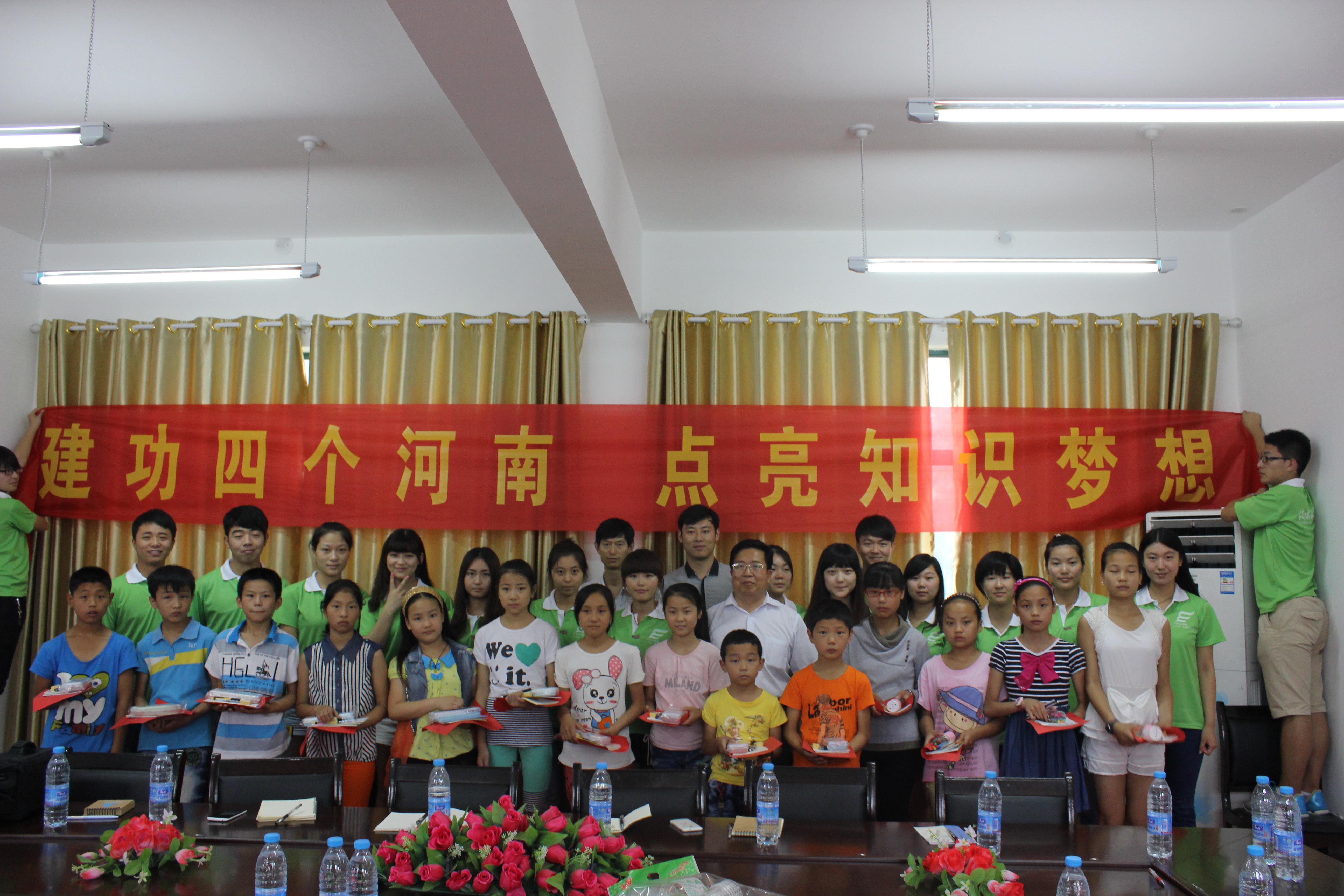 潘新镇位于罗山县南部,许多青壮年外出打工,留守儿童对爱充满渴望。为传递爱心,帮助孩子们树立乐学思想,7月1日,经济公司“三下乡”社会实践队来到潘新中心小学,在这里开展了题为“建功四个河南,点亮知识梦想”社会实践活动。