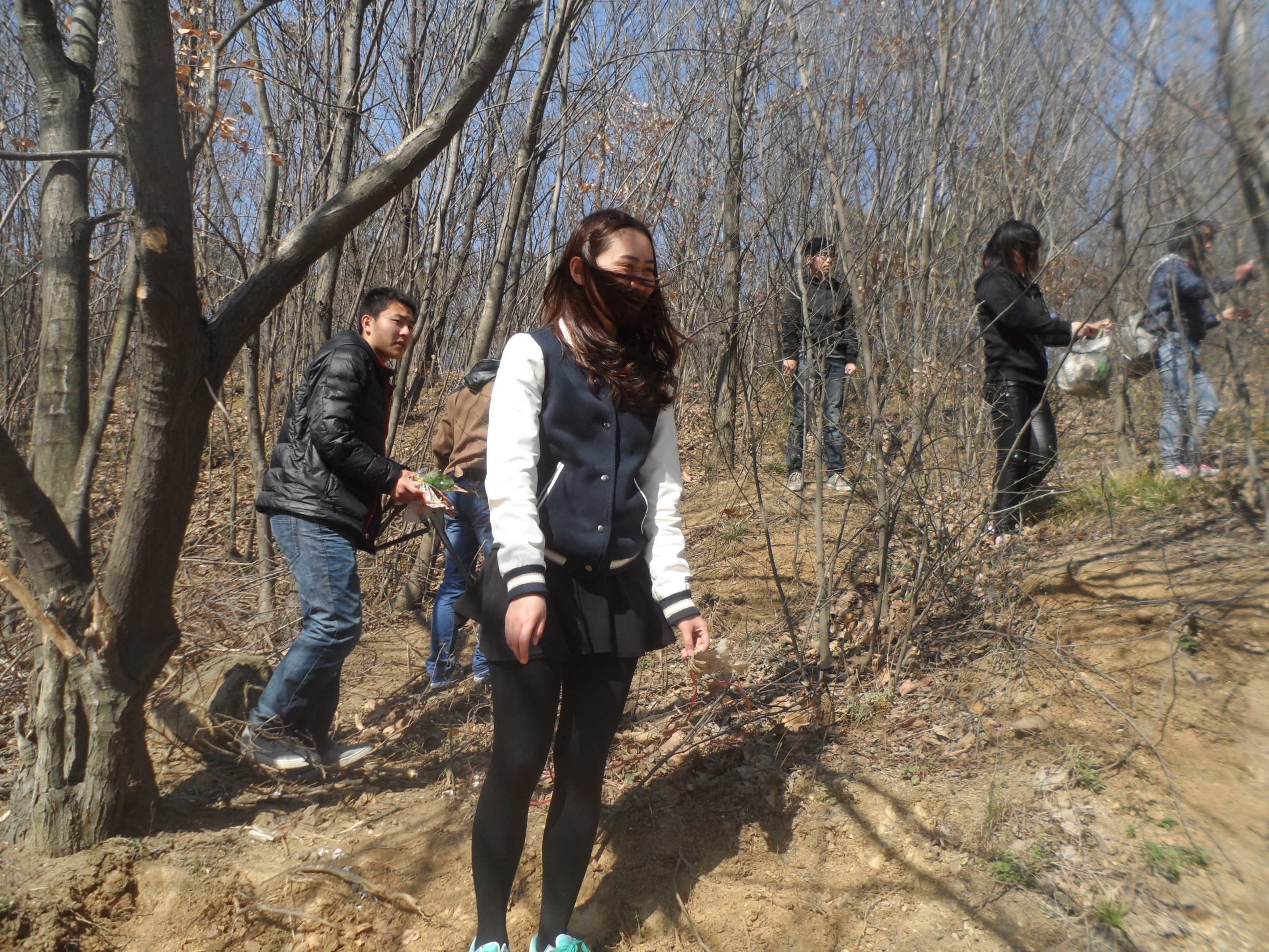 学员们经过事先的安排分为几个小组,有条不紊、热火朝天地干了起来。他们本着“学雷锋,争先锋”的精神,以团结协作、务实高效为原则,认真仔细地清理每一份垃圾,尽管今天风很大,垃圾位置时有变动,但是同学们毫无抱怨,依然表现出了极大的热情。经过近一个小时的拾捡清理,山坡呈现出春天的勃勃生机。