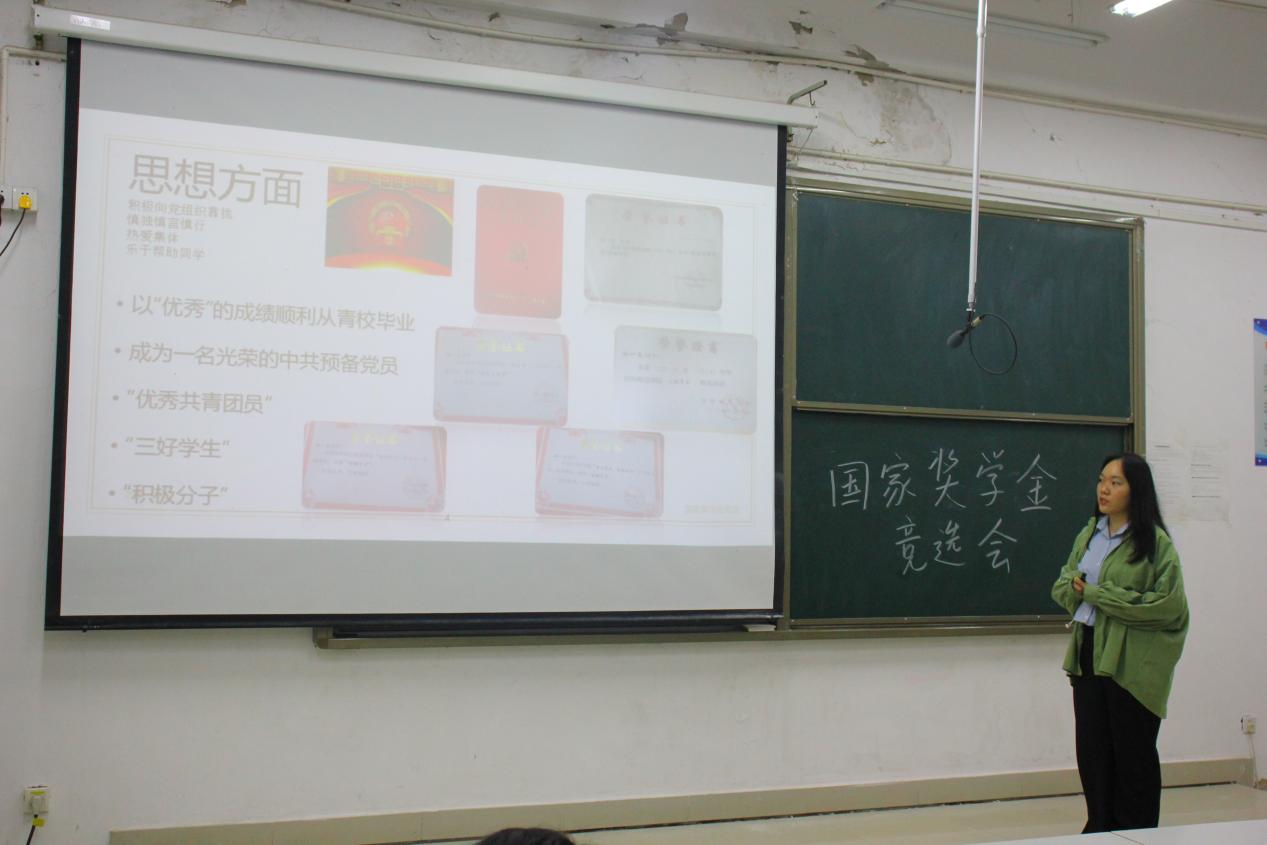 活动伊始,杨紫涵老师介绍了国家奖学金的评选条件及程序,讲解了现场打分细则。随后,20名国家奖学金候选人按照抽签顺序,依次从思想道德、学业成绩、学科竞赛、学术研究、社会实践、文体活动等方面进行了个人风采展示。他们积极进取的人生态度、持之以恒的学习毅力、敢于拼搏的奋斗精神,深深感染着现场的每位同学,他们用自己的成长经历告诉大家,成功的路上必然充满荆棘,唯有奋发前行,才能不负时光、不负青春。最后,员工代表对20名国家奖学金候选人进行了现场打分。