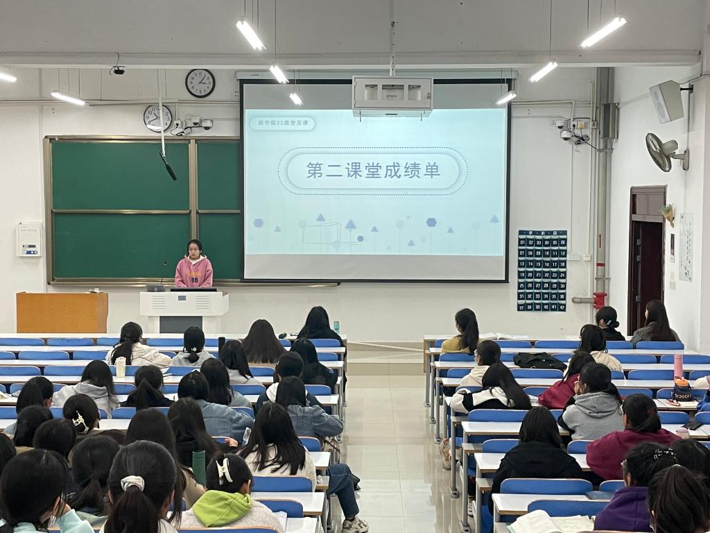 会上,王一凡从学时类型、学时要求、获取方法、注意事项四个方面,对第二课堂的内容进行了细致的讲解。同时,针对“学时类型”和“学时要求”两个方面,她详细介绍了必修的五个学分、学时学分的转化关系及获取学时的两种方法——活动法和补录法,并着重强调了志愿公益和社会实践学时的课外获得方法及补录时间。随后,她由浅入深地分析了在到梦空间APP报名参加活动的步骤和注意事项,希望新生熟练掌握活动流程,避免错过参与活动的机会。最后,她鼓励新生踊跃参与第二课堂活动,在各类活动中增长知识、锻炼能力,不断提升自身的综合素质。宣讲过程中,新生们认真学习、积极互动。
