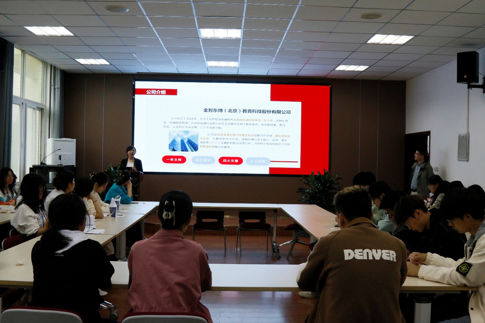 为贯彻落实教育部关于毕业生就业工作的总体部署,深入开展就业育人工作,持续推进毕业生与用人单位精准供需对接,为应届毕业生高质量就业拓宽渠道,5月10日上午,金智东博教育科技股份有限公司就业招聘专场宣讲会在经管楼310会议室举行,公司2023届毕业生积极参加。