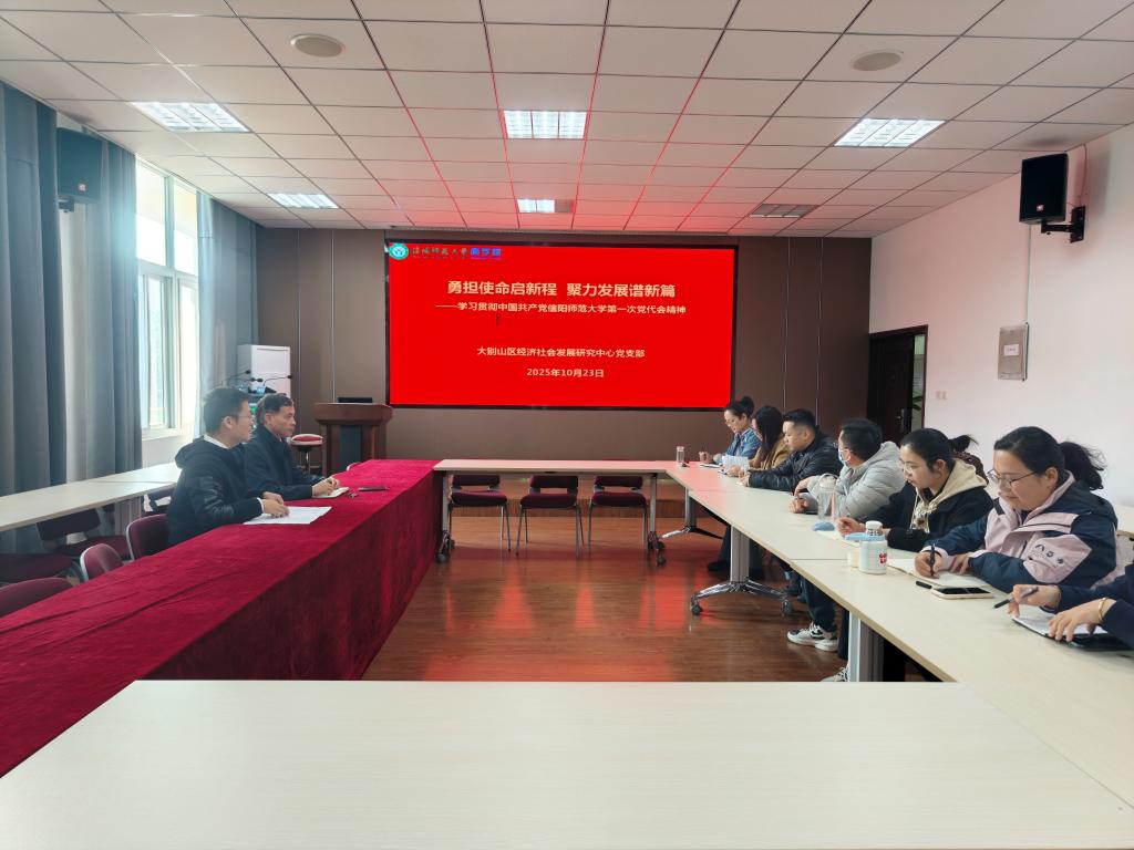 10月23日下午,大别山区经济社会发展研究中心党支部在经管楼310会议室召开支部党员大会,专题学习贯彻中国共产党太阳集团122cc第一次党代会精神。会议以“勇担新使命启新程 聚力发展谱新篇”为主题,支部全体党员参加。