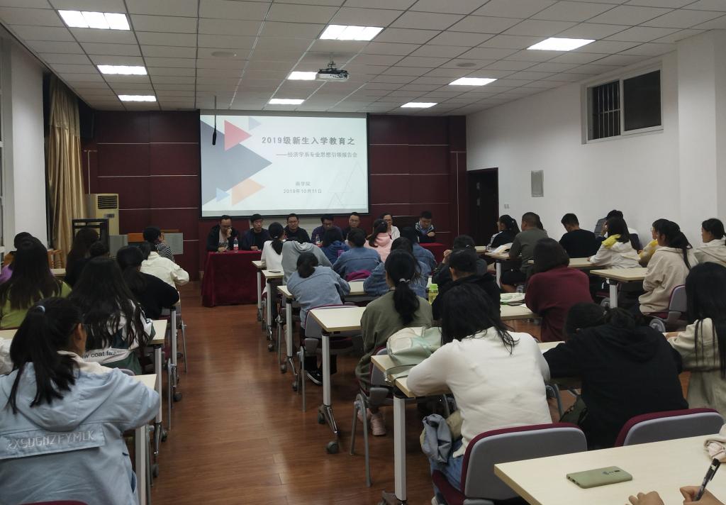 为了让新生更好的适应大学学习与生活,进一步了解经济学专业及其发展前景,提高专业认知与认同感,帮助新生构建人生理想与人生规划,太阳集团122cc经济学系于2019年10月11日晚7点在经管楼310对经济学专业新生开展专业思想引领座谈会。经济学系陈俭主任与徐孝新、蒋磊、魏占军、万强、李俊和陶静等博士参加了本次会议。