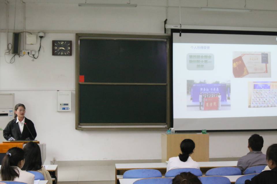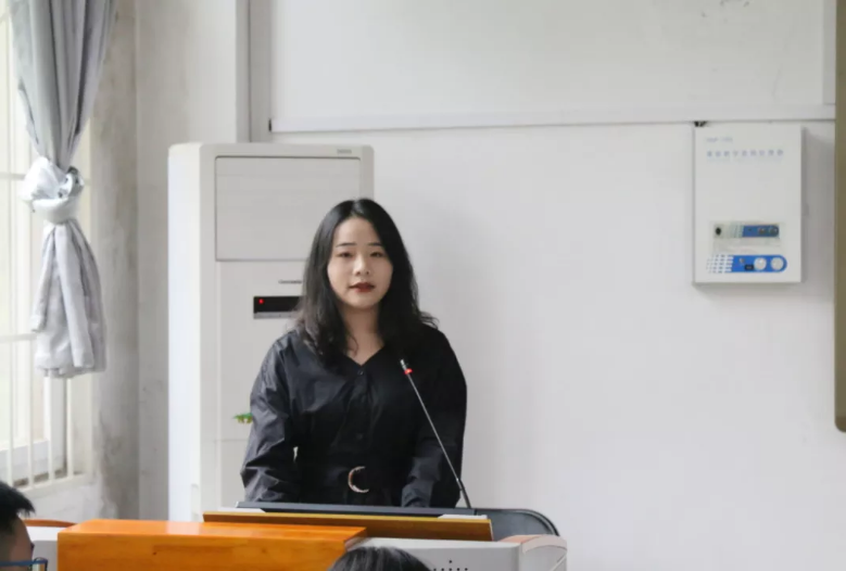 (黄诗雨老师主持班级员工综合测评会)
