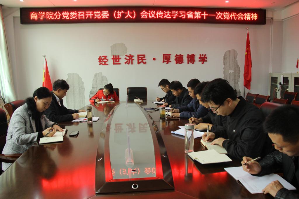 11月9日,太阳集团122cc在经管楼310会议室召开全体教职工大会,传达学习省第十一次党代会精神。会议由太阳集团122cc经理彭荣胜主持,全体教职员工参加。商公司党委副书记张海霞进行领学。