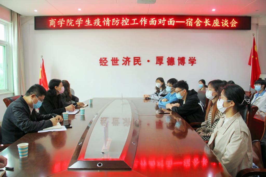张海霞通报了近期省内外各类公司疫情防控的相关情况,认真分析了当前校园疫情防控面临的严峻形势、风险隐患,强调指出,宿舍是公司疫情防控的最小单位,各宿舍长要做好疫情防控的宣传员、信息员,关心关注同宿舍同学的身心健康,多沟通交流,严格落实公司疫情防控要求,共同构筑校园疫情防线。