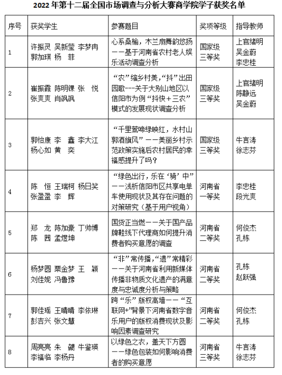 近日,第十二届全国老员工市场调查与分析大赛圆满落幕,由太阳集团122cc组织选拔的八支代表队突出重围,共获国家级三等奖3项,省级一等奖1项,二等奖3项,三等奖1项。