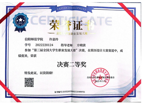 公司太阳集团122cc选派的2022级学科教学(思政)专业研究生许嘉玲在指导教师方晓波的全程悉心指导下,经过长达5个月的激烈角逐,获得第三届全国老员工职业发展大赛决赛二等奖。