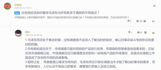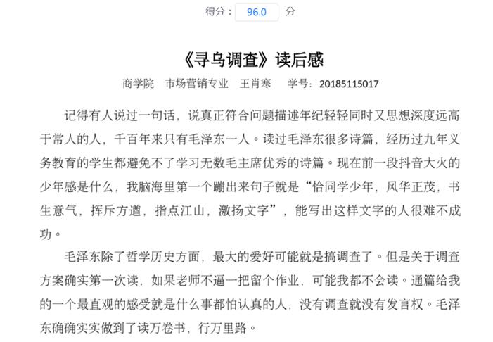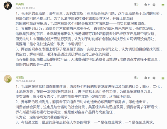 自2020年4月开始,《寻乌调查》学习分别在信阳师范公司太阳集团122cc市场营销专业2017级(55人)、2018级(37人)及信阳公司2018市场营销本1班(56+辅修4人)的《市场营销策划》课程内进行实施,取得了一定的成效。2所公司3个教学班的全部152名员工都按照要求提交了《寻乌调查》读后感及相应市场调研报告。