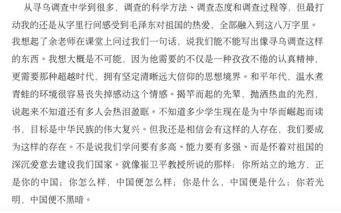 《寻乌调查》学习是绝大多数员工第一次阅读红色经典原著,从最初本能的拒绝、抵触,到为完成学习任务不得不被动学习,到开始阅读之后的沉浸其中,被毛主席认真细致的调研态度所折服,被其中丰富的内容、魅力的语言所吸引,为其中揭示出的剥削之残酷、无产阶级受压迫之深重而震惊,对调查得出的结论就有了更为深刻的认同,对党和人民的伟大斗争有了更好的理解!